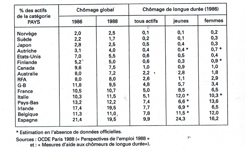 * En outre, certains n’ont pas « évité » l’installation du chômage de longue durée des travailleurs sans qualification. Il est important dans tous les pays de la CEE, sauf le Luxembourg et la RFA. Pire, dans beaucoup de pays – et spécialement en Espagne et en Belgique – ce chômage de longue durée est lui-même concentré, sur les jeunes en particulier.